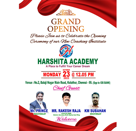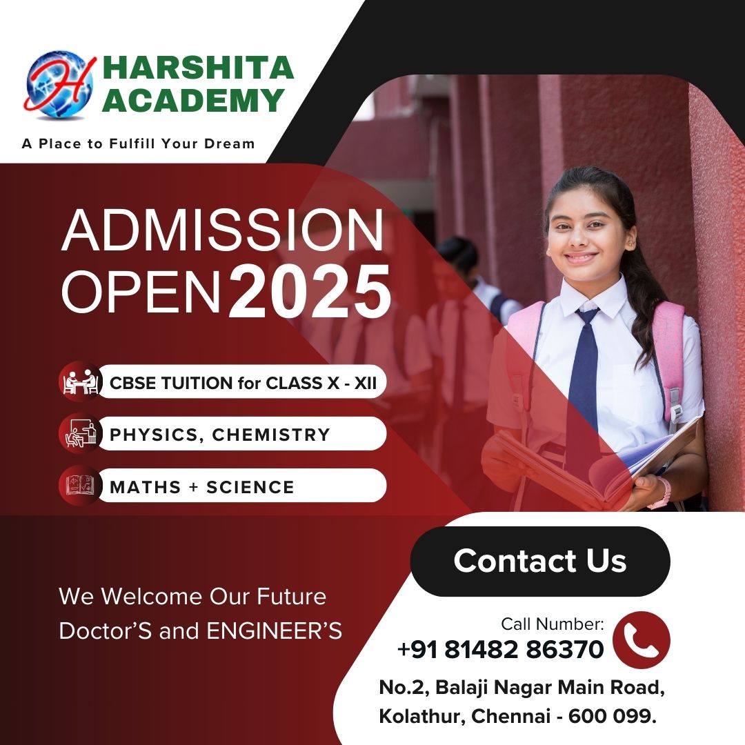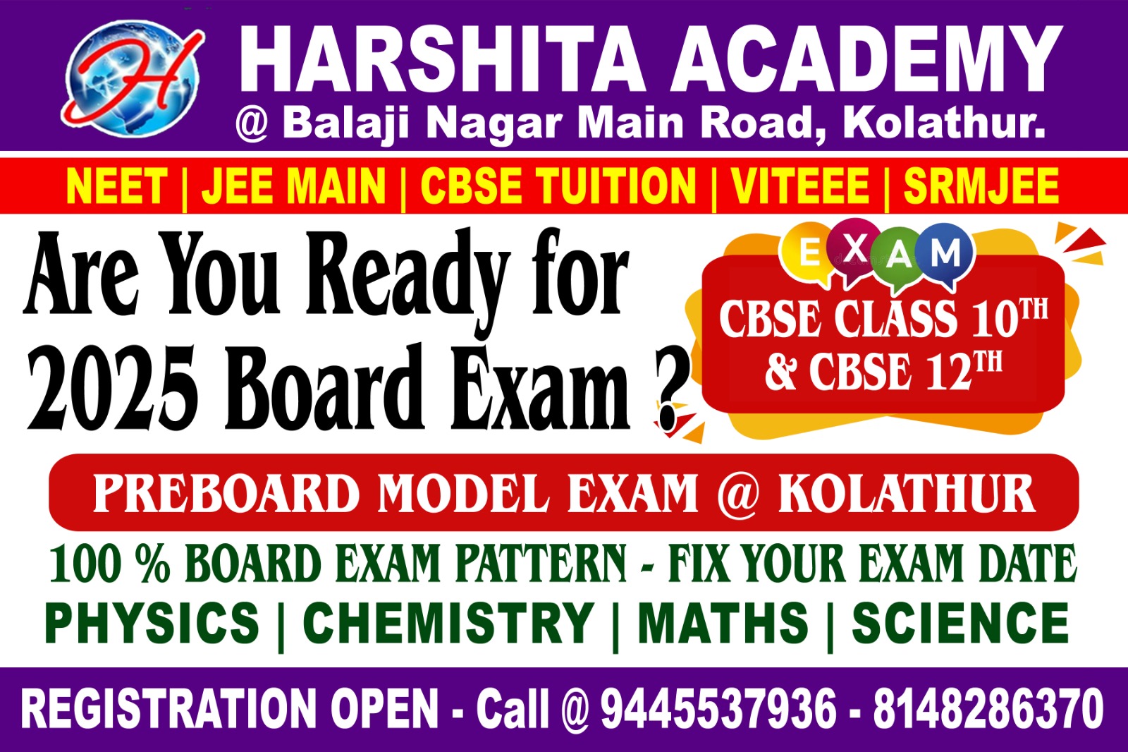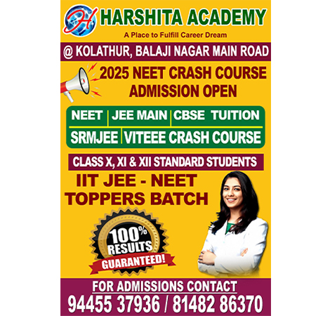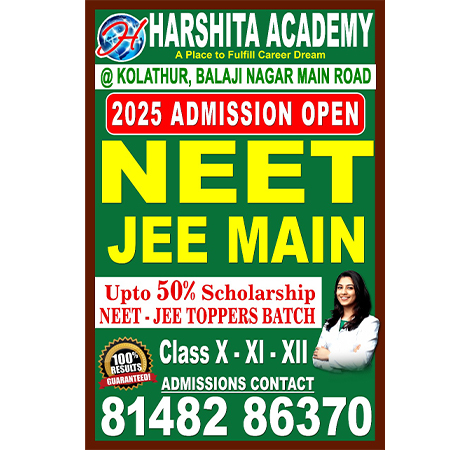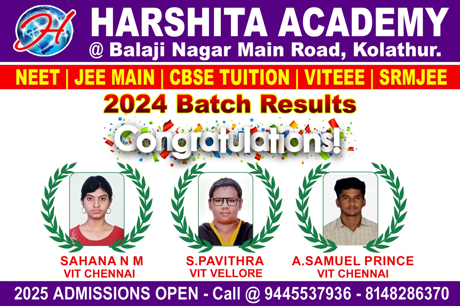 Harshita Academy an Entrance Exam Coaching Centre in Chennai for NEET, AIIMS, JIPMER, IIT JEE Main & JEE Advanced, CLAT, CA CPT, IMUCET & other Competitive Exams in India.Harshita has Experienced faculties & Our Academic Director Proff Rajkumar ( An IIT Alumni) was Ex Professor in IIT Madras, We Assure 100% Results through our dedicated faculty team for each and Every Course & Shall provide Individual attention to Students by our Subject Experts to provide depth Knowledge.